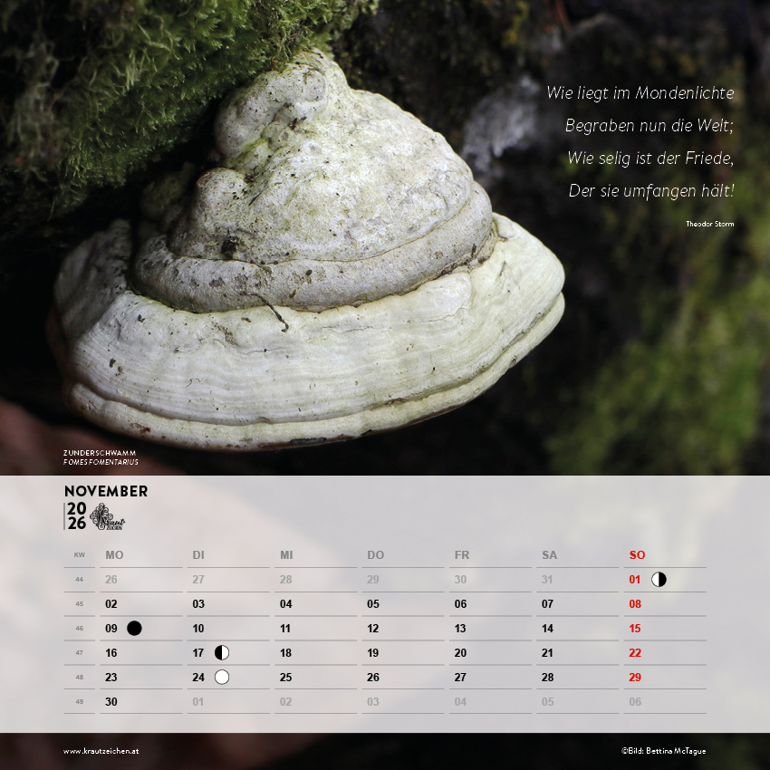Fotokalender für das Jahr 2026 mit Mondphasen